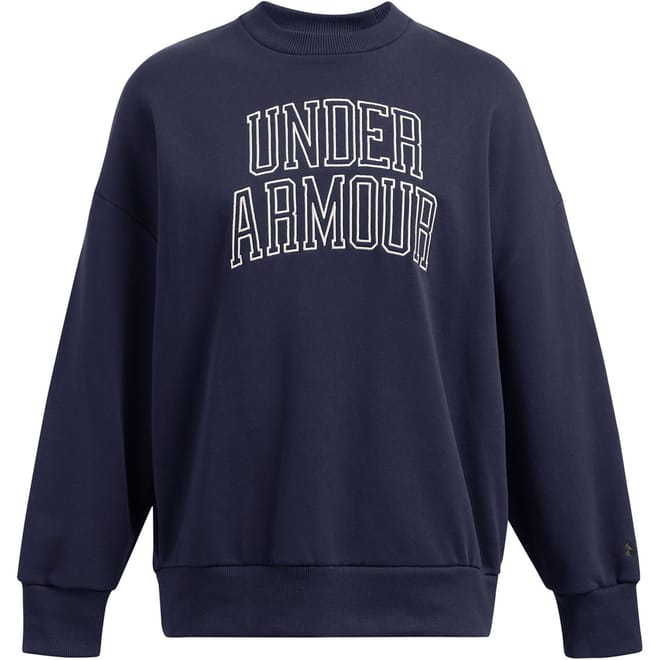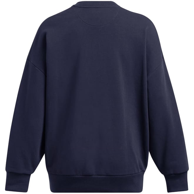 Discover the Under Armour top, featuring a crew neck and long sleeves with a drop shoulder design. This solid-coloured piece offers an oversized fit, complemented by ribbed cuffs and a ribbed collar for added comfort and style. -