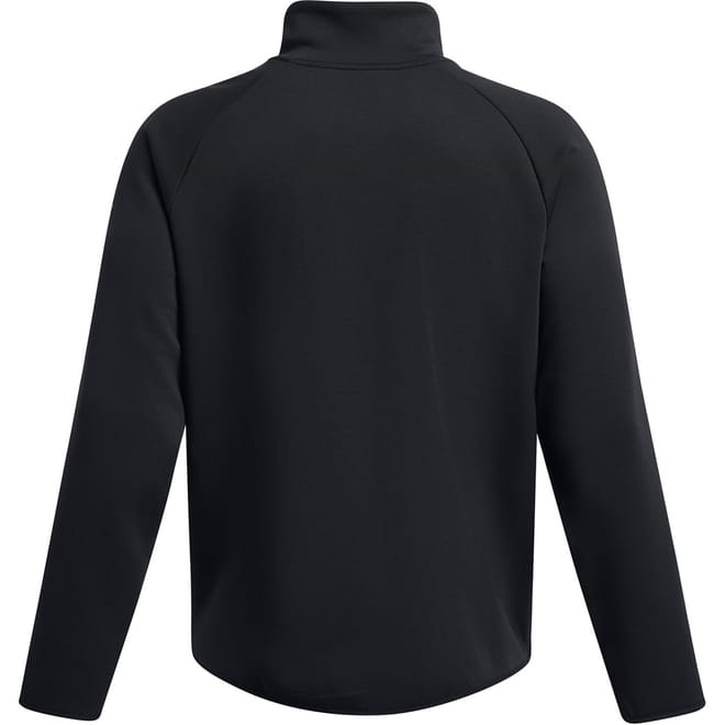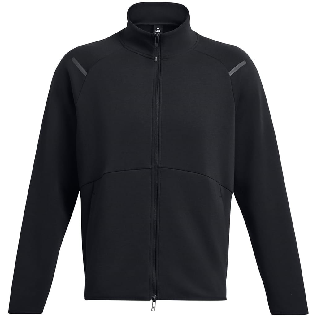 This Under Armour jacket features a relaxed fit with a solid pattern and raglan sleeves for enhanced mobility. It includes a zipper closure and is adorned with a logo embellishment, adding a touch of brand identity. -