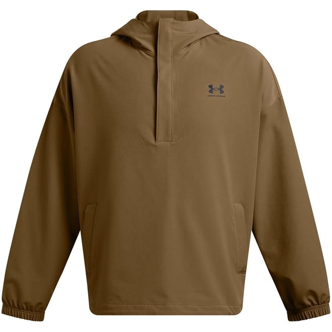 Discover the Under Armour top, featuring a hooded neck and long sleeves with elasticated cuffs. This solid pattern design offers a sleek and modern look, perfect for any casual occasion. -