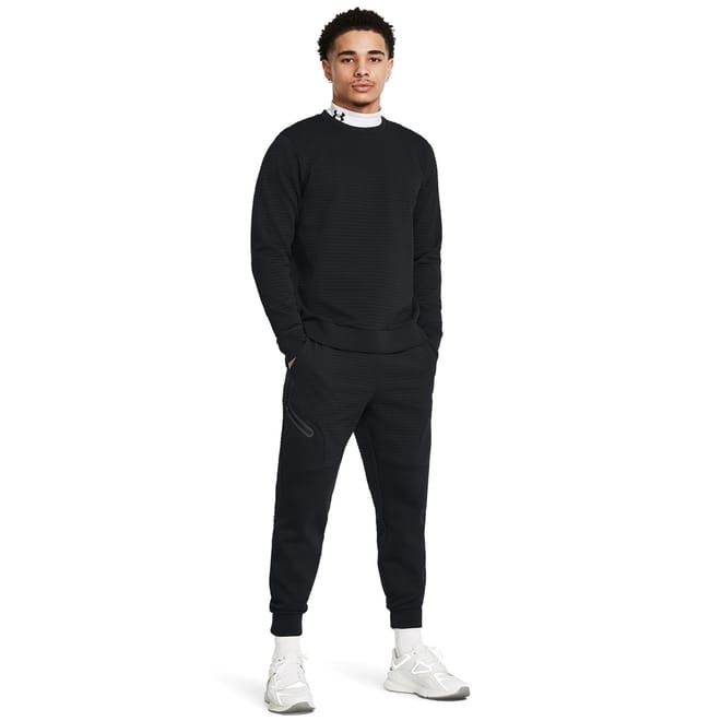 This Under Armour top features a crew neck and long sleeves, offering a regular fit. The solid design is complemented by ribbed cuffs and a ribbed collar, providing a classic and comfortable look. -