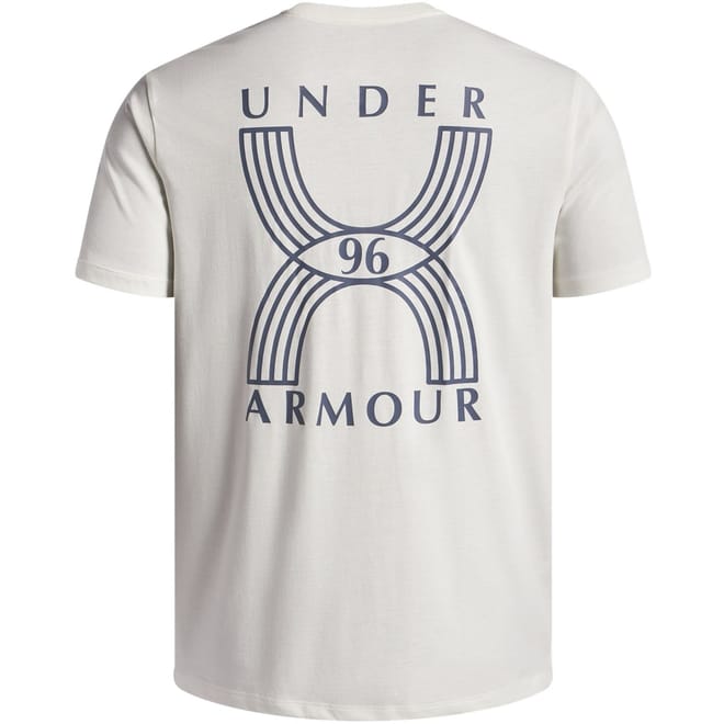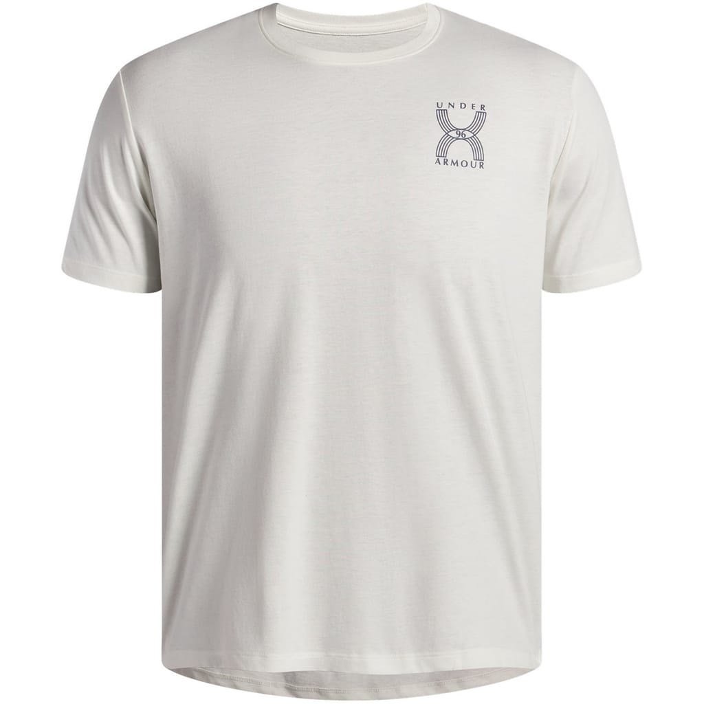 This Under Armour top is designed for performance, featuring a regular fit and short sleeves. The crew neck and graphic print add a stylish touch, making it ideal for running and other athletic activities. -
