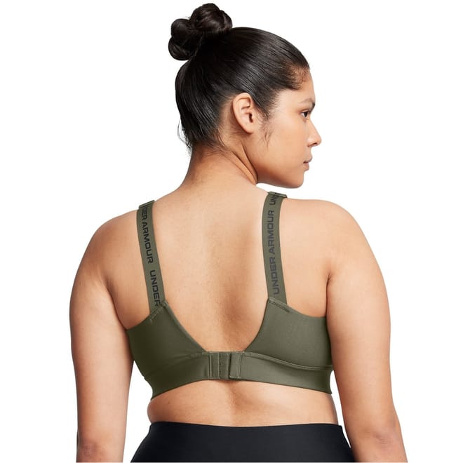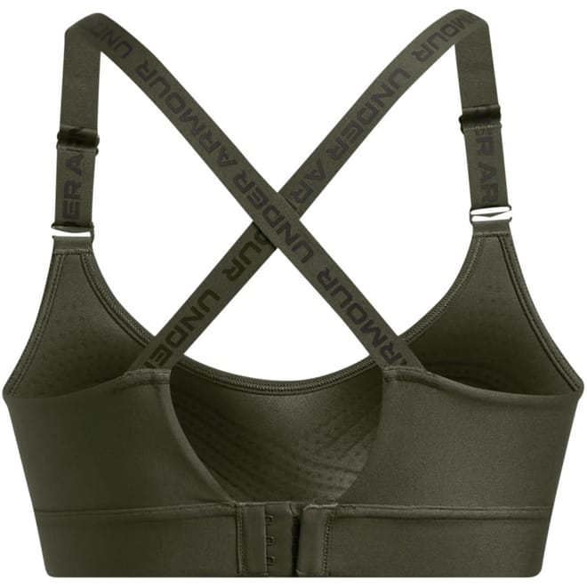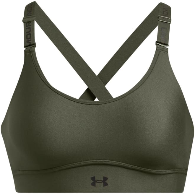 The Under Armour U A Infinity top is designed for sporting activity, offering a medium impact experience. Featuring a scoop neck and a snug fit, this solid pattern top ensures comfort and style during workouts. -