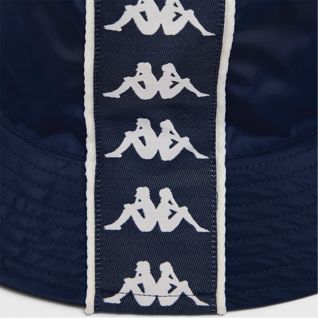 Discover the Kappa bucket hat, featuring a striking graphic print and an embroidered logo. This stylish hat combines functionality with a touch of flair, making it a versatile addition to your wardrobe. Perfect for those seeking a blend of comfort and contemporary design. -