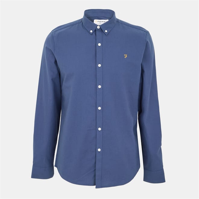 This Farah top is a formal essential, featuring a solid pattern and long sleeves with barrel cuffs. The regular fit ensures comfort, while the button closure adds a classic touch. A subtle logo embellishment completes the look, making it a versatile addition to any wardrobe. -