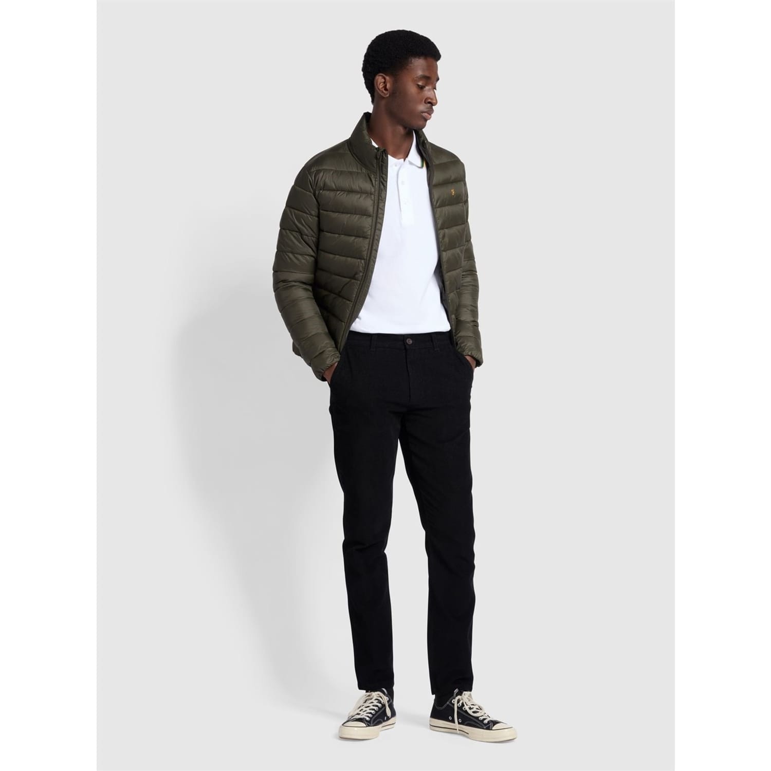 Stay warm this winter with the Farah puffer jacket. This quilted design features a solid pattern and a regular fit, ensuring comfort and style. The jacket is equipped with a zipper closure and a straight hem, making it a practical choice for cold weather. The short length adds a modern touch, while the logo embellishment provides a subtle brand detail. -