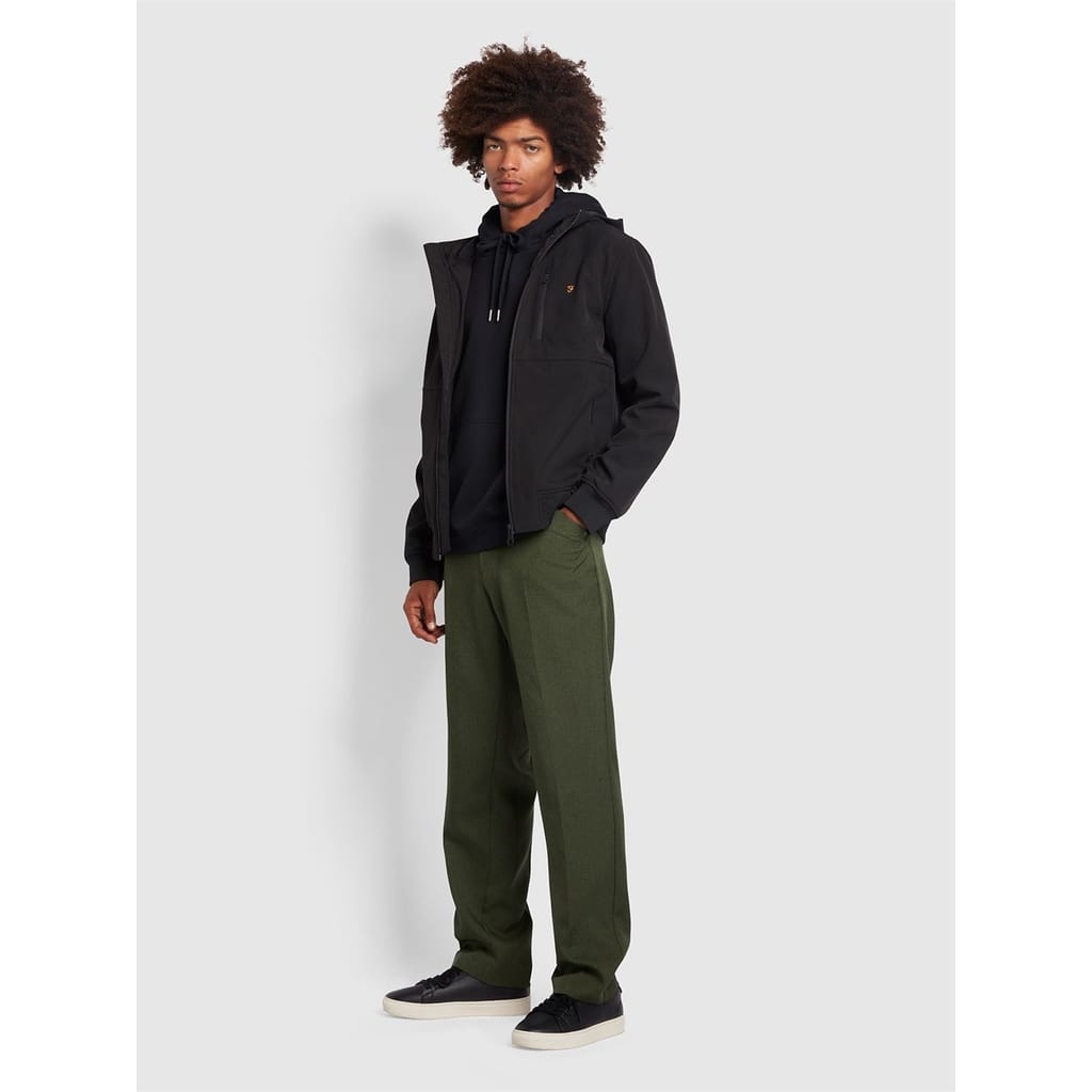 This Farah top features a hooded neck and long sleeves, offering a regular fit. The solid pattern is complemented by a zipper closure and ribbed cuffs. Embellished with a logo and pocket, it belongs to the casual collection, making it a versatile addition to your wardrobe. -