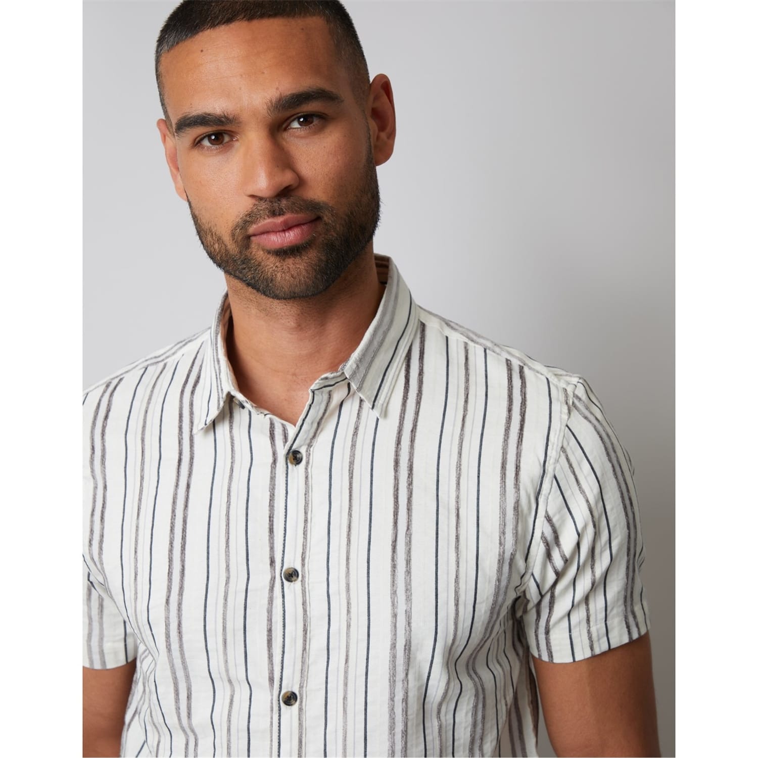 Discover the Threadbare top, a casual staple featuring a stripe pattern and a shirt collar. This short-sleeve piece offers a regular fit, enhanced by a button closure and a subtle logo embellishment. Perfect for a relaxed yet stylish look. -