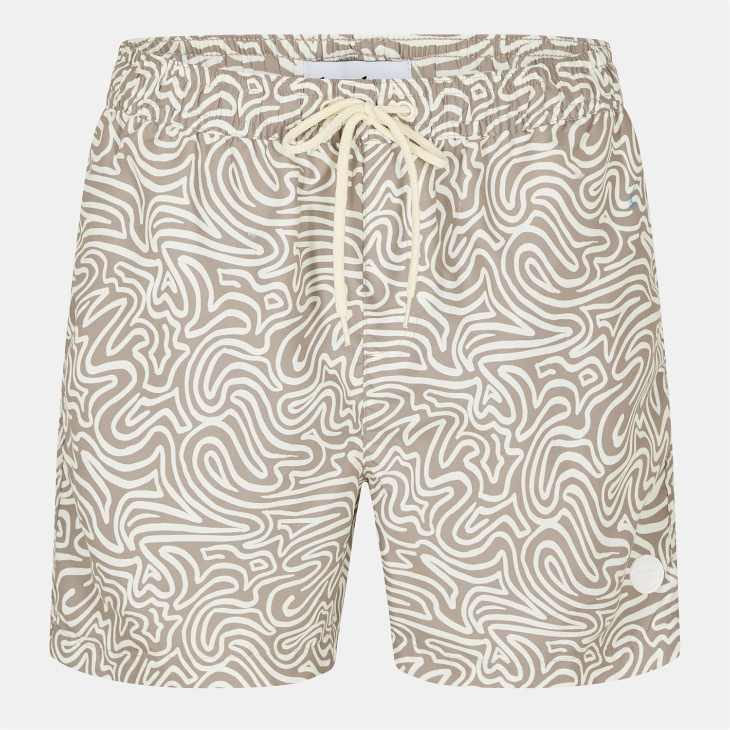 Discover the Threadbare swimwear collection with this abstract swim bottom, perfect for swimming and beach activities. Featuring a drawstring closure for a secure fit, this piece is adorned with a subtle logo embellishment, adding a touch of style to your swimwear ensemble. -