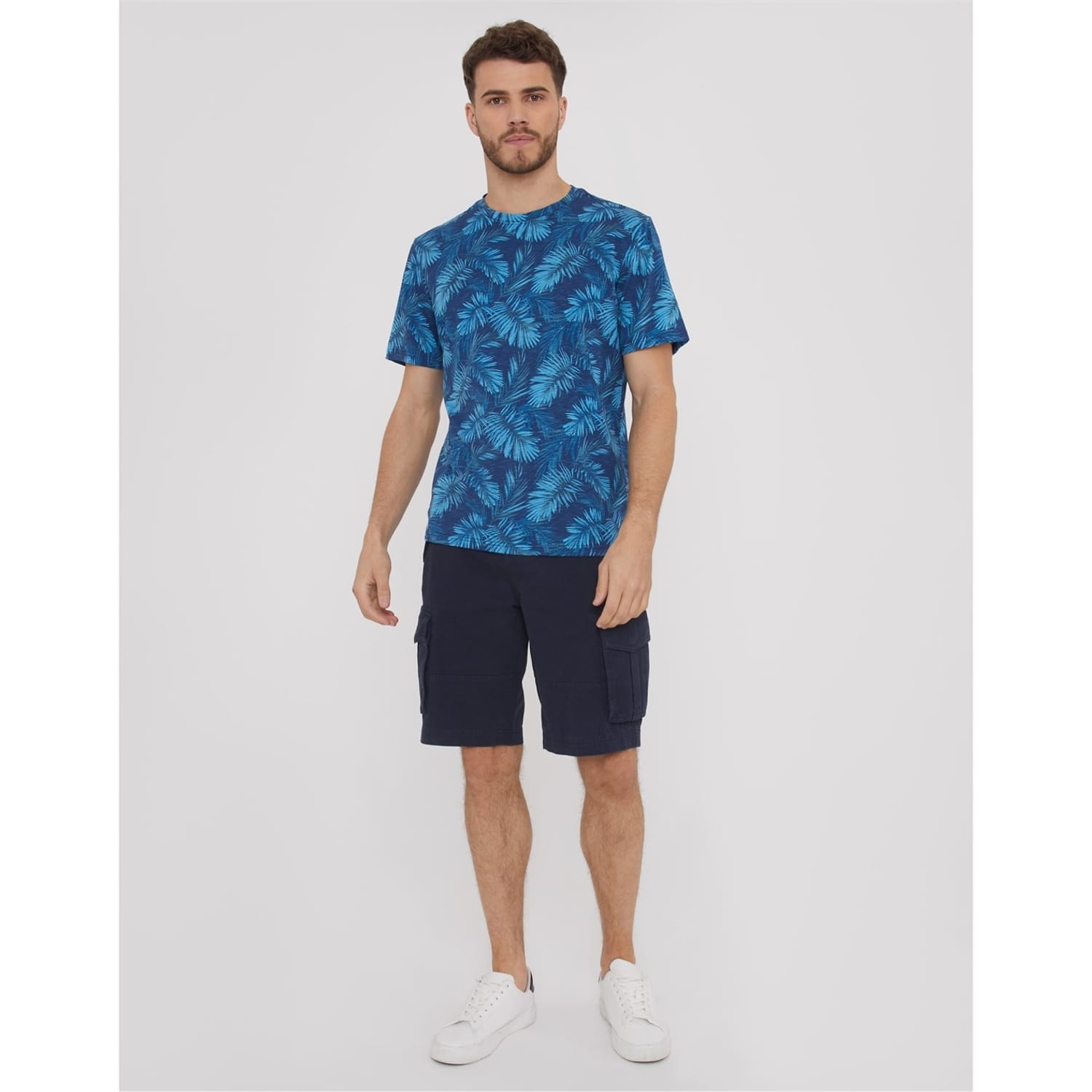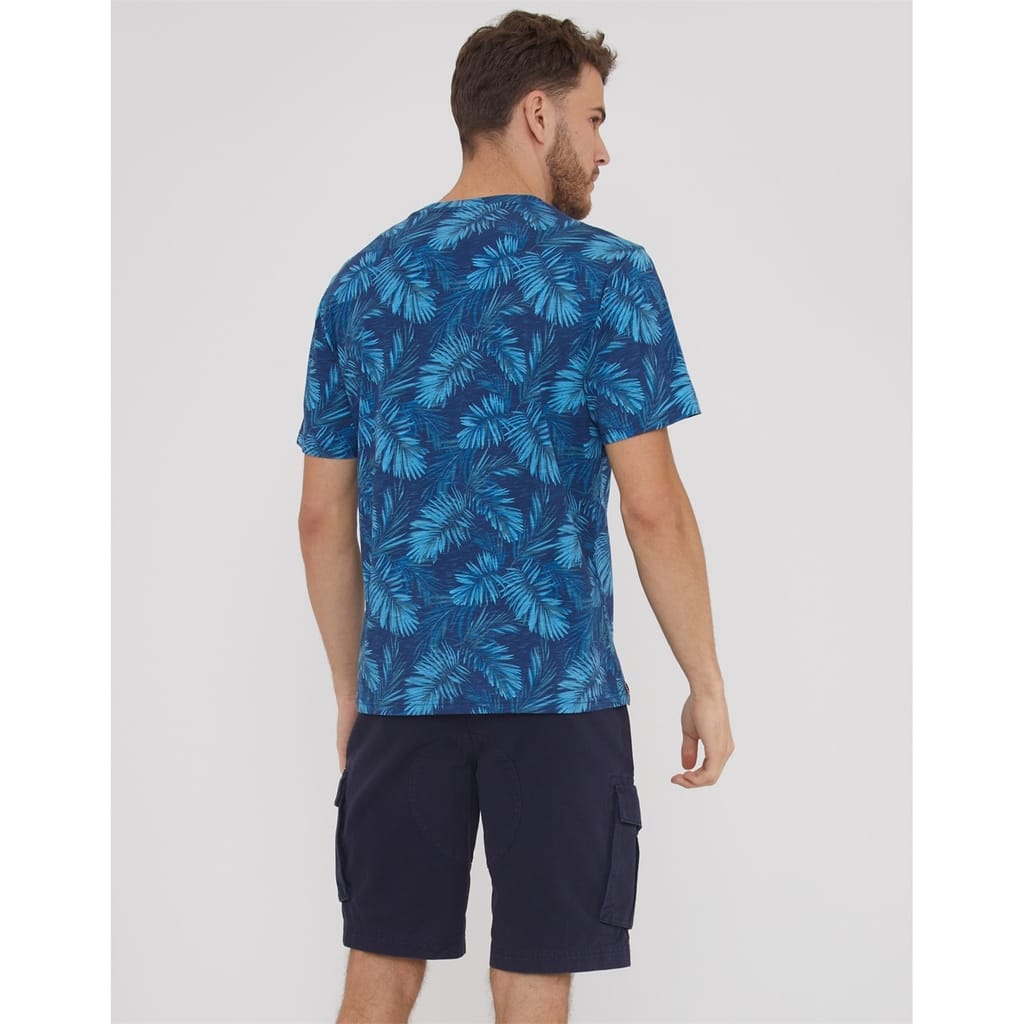 Discover the Threadbare top, a casual essential featuring a leaf print design. This knit piece offers a regular fit with short sleeves and a classic crew neck. The top is adorned with a subtle logo, adding a touch of brand identity to your wardrobe. -