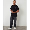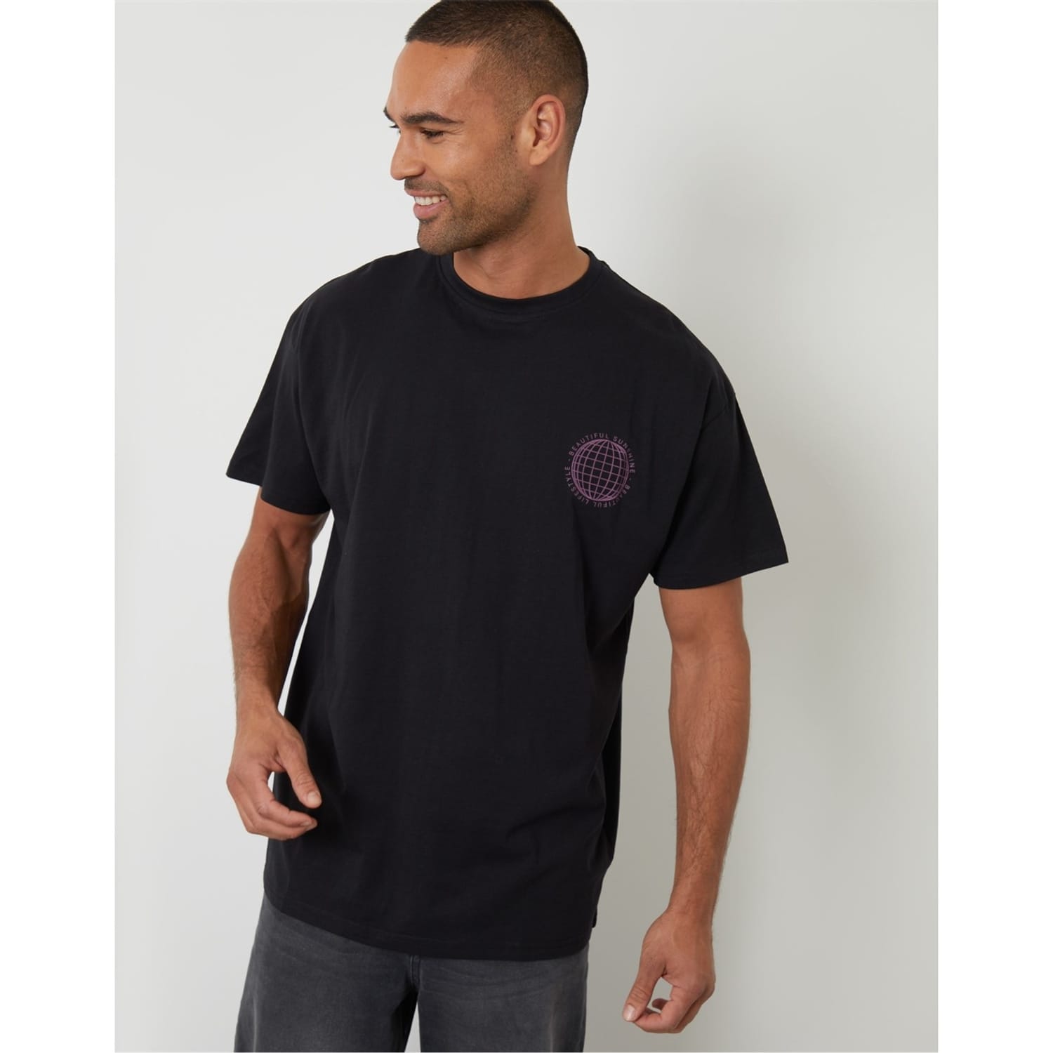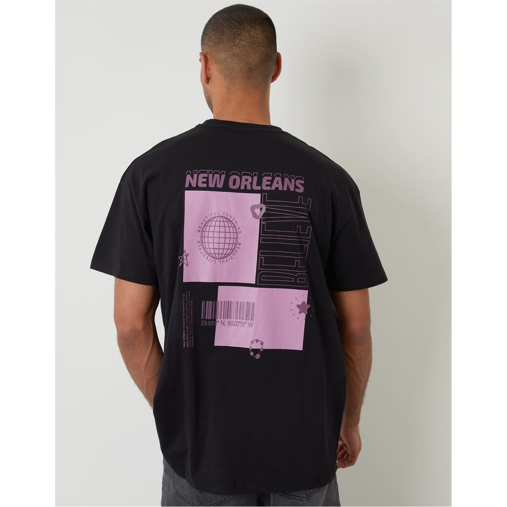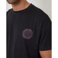 Discover the Threadbare top, featuring a regular fit and short sleeves. This knit piece showcases a crew neck and a striking graphic print with a globe and lettering design. The top is adorned with a logo, adding a distinctive touch to its overall look. -