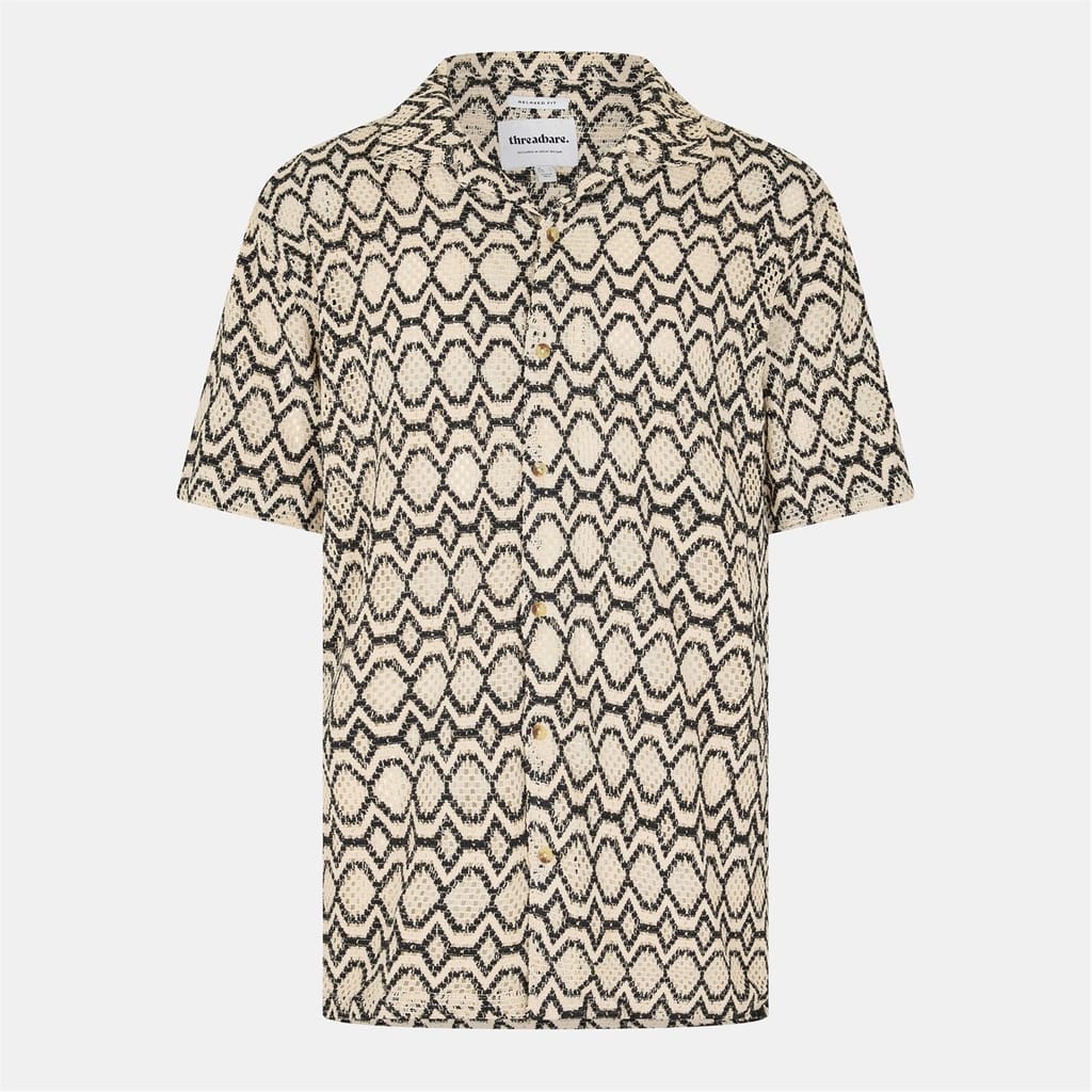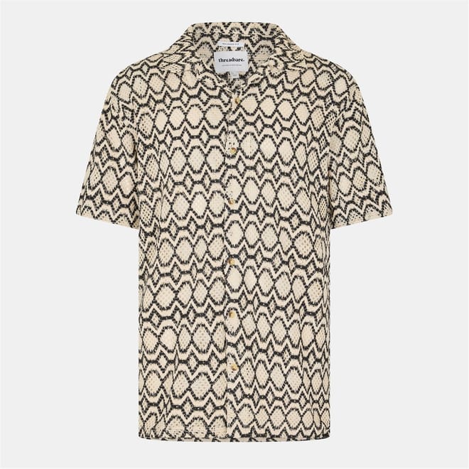 Elevate your casual wardrobe with this Threadbare top, featuring a striking snake pattern. Designed with a shirt collar and short sleeves, it offers a regular fit for comfortable wear. The button closure adds a classic touch, while the logo embellishment subtly enhances its style. Perfect for those seeking a patterned piece with a modern edge. -