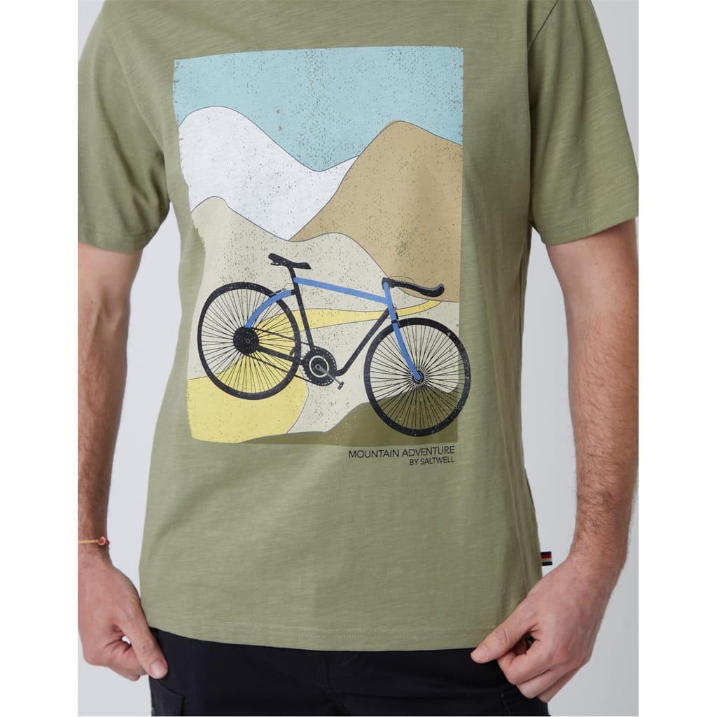 Discover Saltwell's casual top, perfect for summer and spring. This regular fit piece features a short sleeve design with a crew neck. Adorned with a distinctive bicycle graphic and logo, it offers a unique graphic print that stands out. Ideal for those seeking a stylish yet comfortable addition to their wardrobe. -
