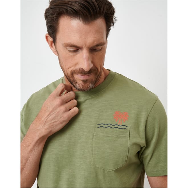 Discover Saltwell's casual top, perfect for summer. This regular fit piece features a crew neck and short sleeves, offering comfort and style. The graphic print adds a trendy touch, while the chest pocket provides a practical embellishment. Ideal for those seeking a blend of fashion and functionality. -