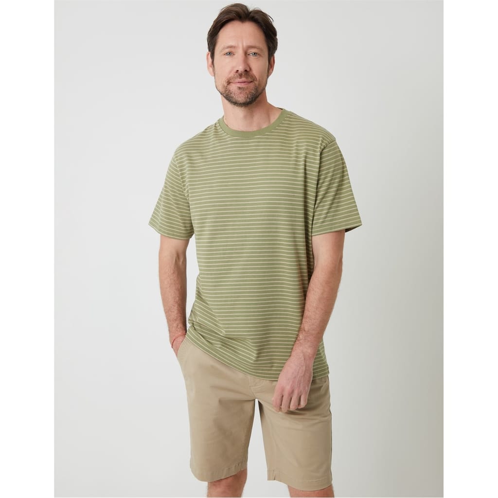 This Saltwell top is a casual essential, featuring a regular fit and short sleeves. The crew neck design is complemented by a horizontal stripe pattern, adding a touch of style. A subtle logo embellishment completes the look, making it a versatile addition to your wardrobe. -