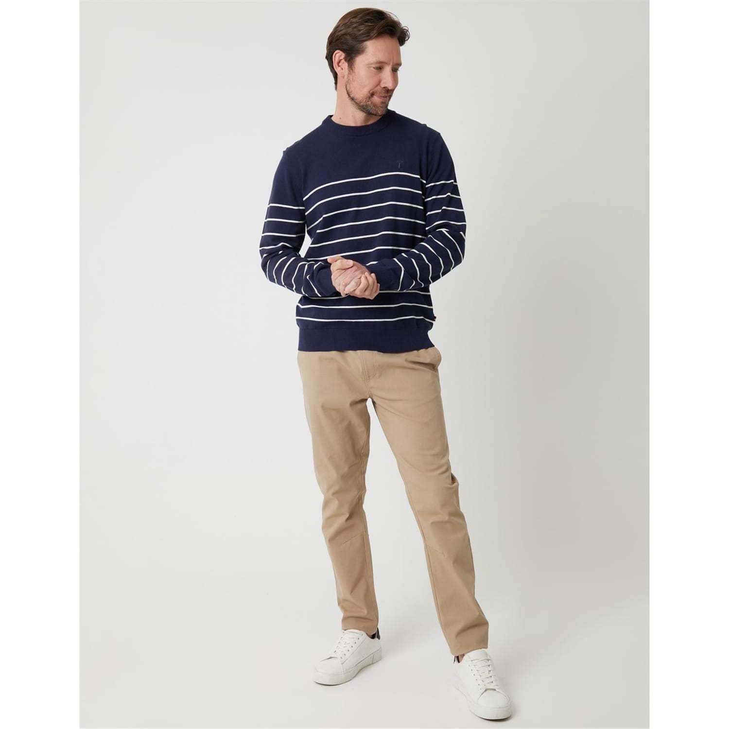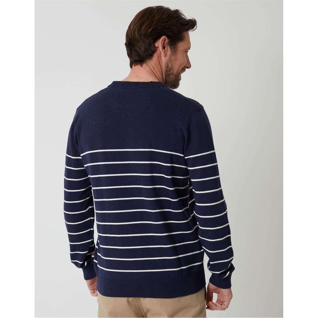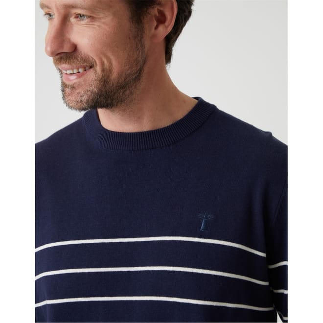 This Saltwell top features a classic crew neck and long sleeves, offering a regular fit. Crafted with a knit texture, it showcases a horizontal stripe pattern. The design is completed with ribbed cuffs and a subtle logo embellishment, adding a touch of distinction to this versatile piece. -