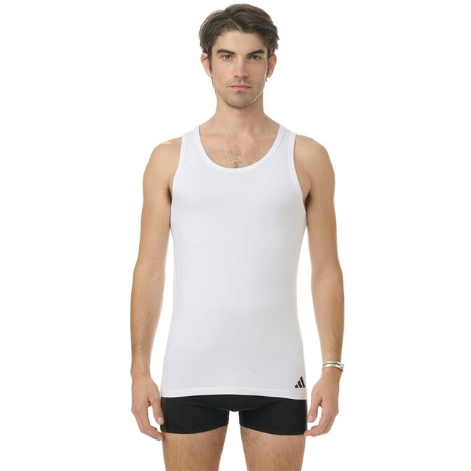 This adidas sleeveless top features a scoop neck and a slim fit, perfect for a sleek silhouette. Part of the basic collection, it comes in a solid pattern and includes a logo embellishment. Available in a convenient 2-pack, this top combines style and practicality for everyday wear. -