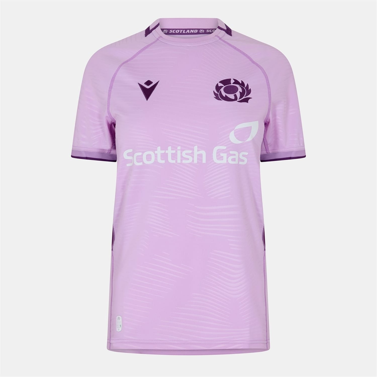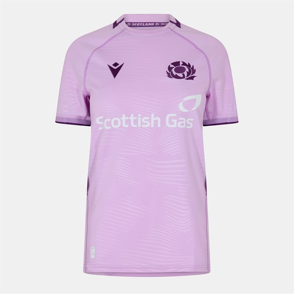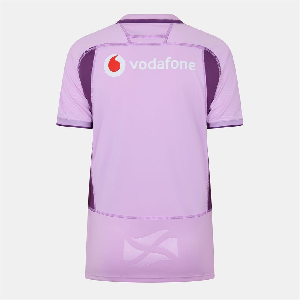Stand out this season in the Macron Scotland Rugby Union Away Shirt 2025/26.. The crew neck and ribbed cuffs provide added comfort, while the Subtle embossed detailing across the body and a tonal Saltire panel on the back add a touch of heritage. Ideal for match days, watch parties, or casual wear.