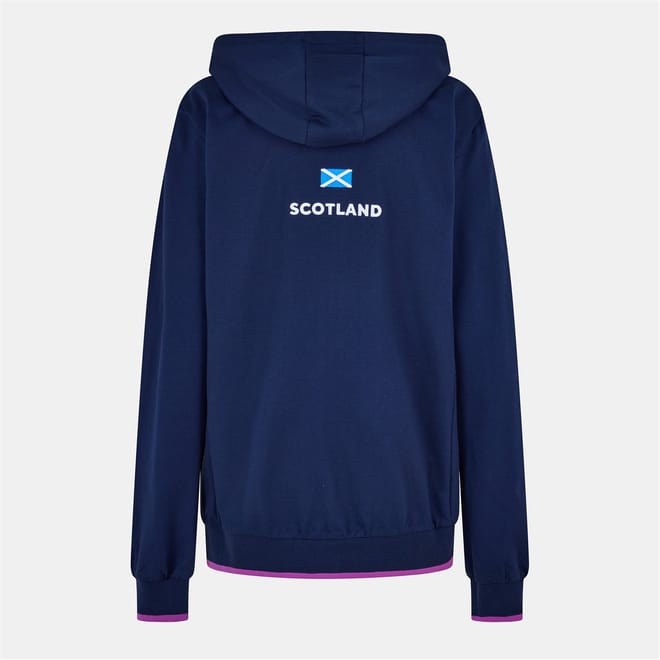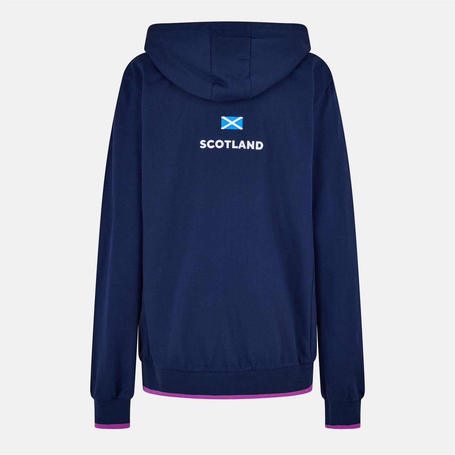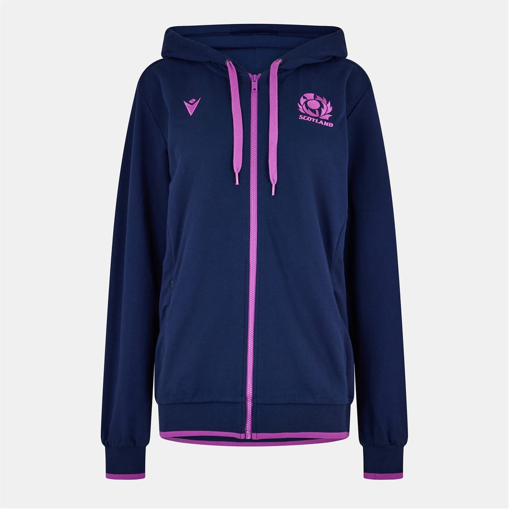Stay warm while showing your colours with the Macron Scotland Rugby Union Full Zip Hoodie. The classic crest and signature Macron logo create a sporty, sleek look, while the drawcord on the hood offers a customisable fit. Perfect for match days, travel, or relaxed everyday wear.