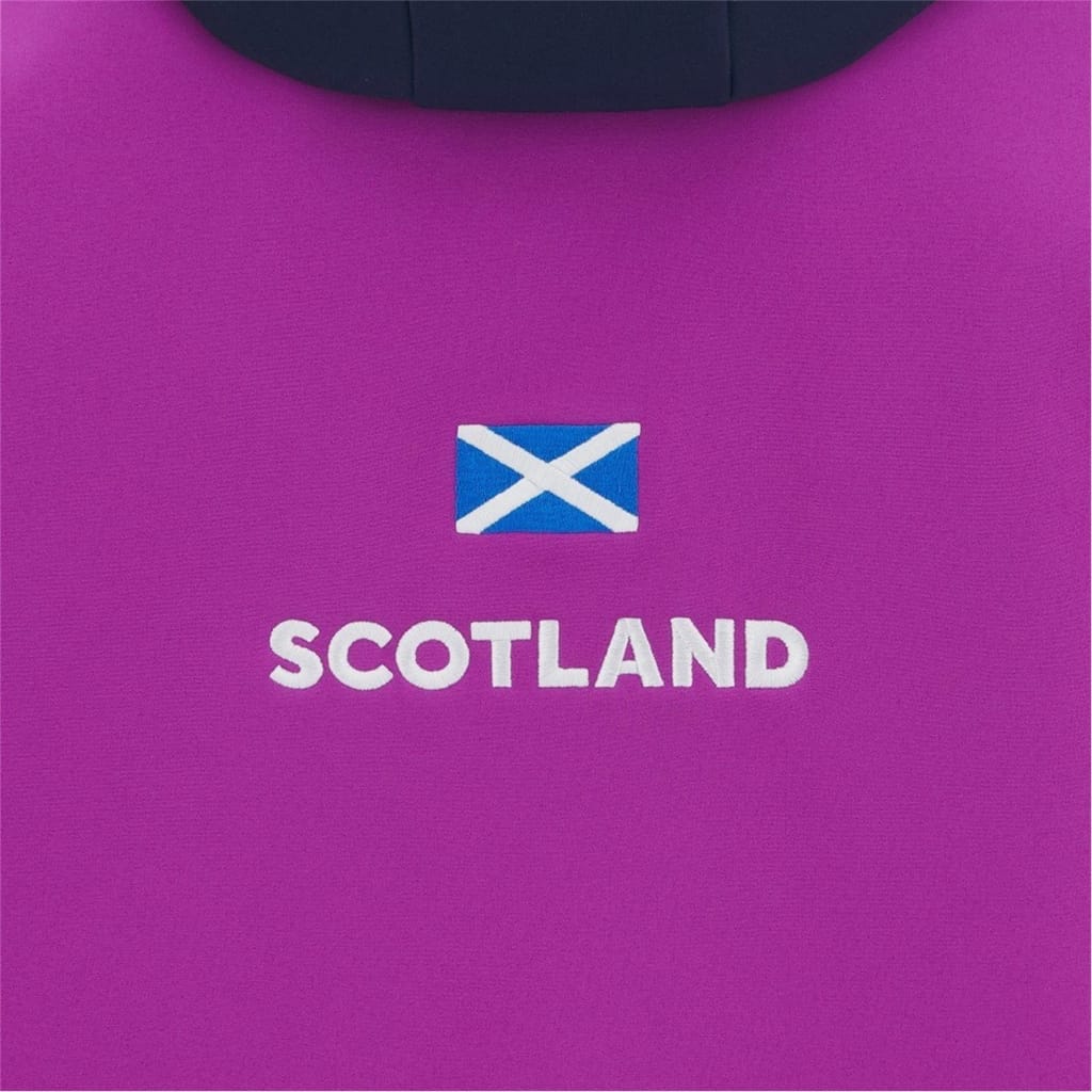 The Macron Scotland Rugby World Cup Softshell Jacket is built for protection against the elements with a sleek, functional design. Featuring a striking two-tone colourway and a practical front zip pocket, it blends style with performance. Perfect for matchdays, training, or everyday wear in changeable weather.