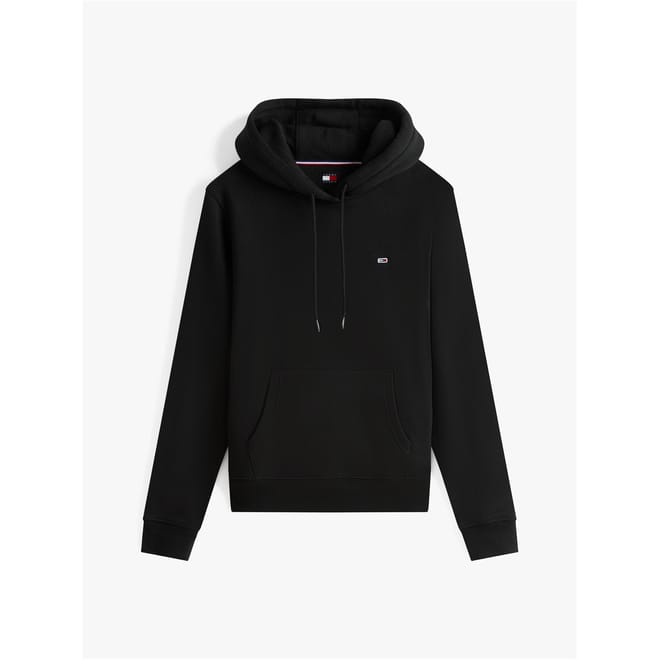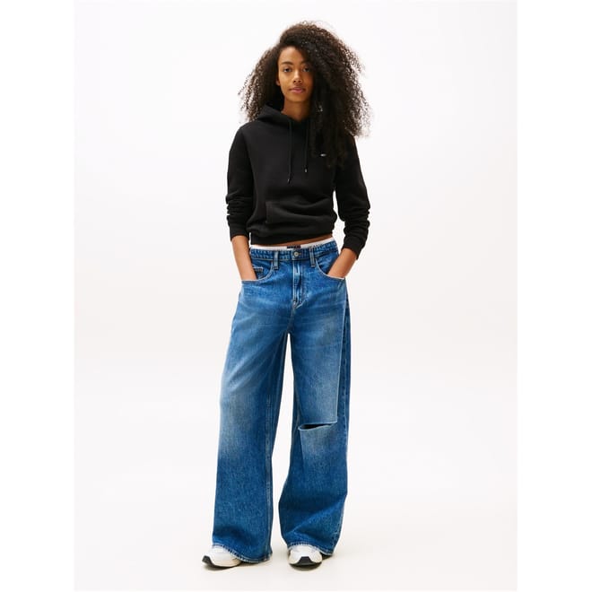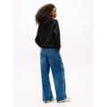 This Tommy Jeans cropped top features a hooded neck and long sleeves with ribbed cuffs. The solid pattern is enhanced by a flag graphic and logo embellishments, offering a stylish touch. Designed in a regular fit, this top is perfect for casual wear. -