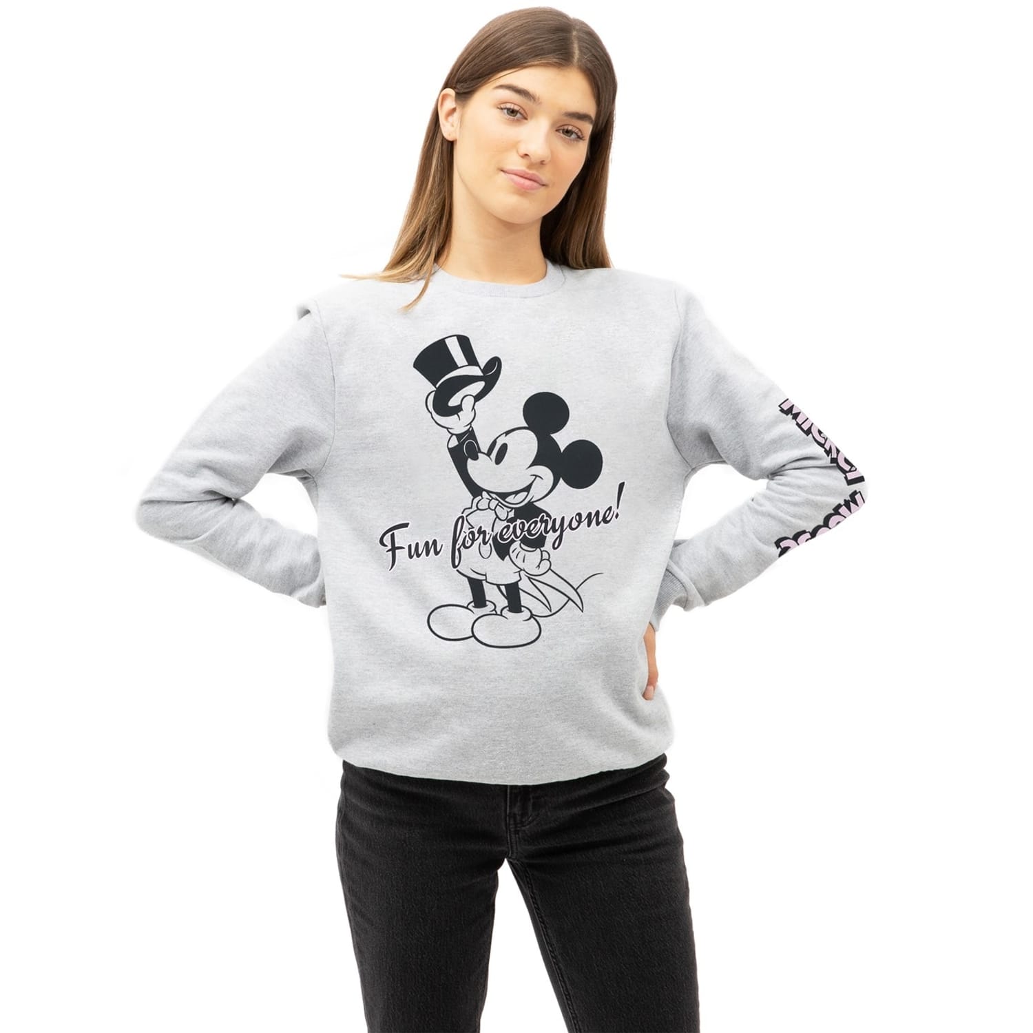 This Disney top features a classic crew neck and long sleeves, offering a regular fit for comfort. The ribbed collar and cuffs add a touch of detail, while the standout Mickey Mouse graphic print and logo embellishments make it a playful addition to any wardrobe. -