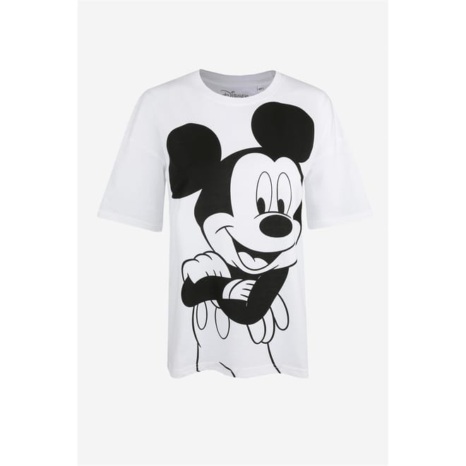 This Disney top features a regular fit with a classic crew neck and short sleeves. Adorned with a Mickey Mouse graphic print, it showcases the iconic Disney logo, making it a playful addition to any wardrobe. -