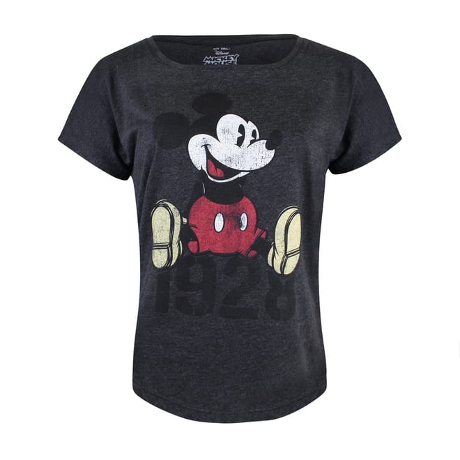 This Disney top features a regular fit with a scoop neck and short sleeves. Adorned with a Mickey Mouse graphic print, it showcases a playful logo embellishment. Perfect for fans of the Disney collection, this top combines comfort and style effortlessly. -