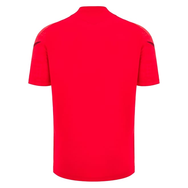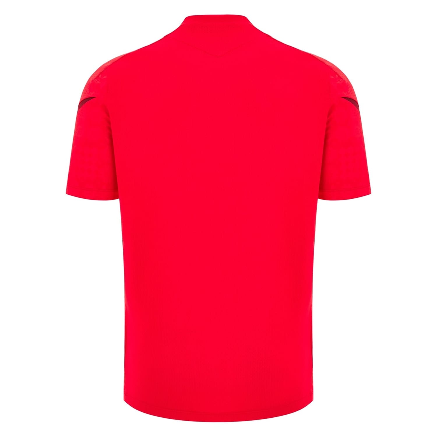 Push your performance in the Macron Wales Rugby Training Shirt 2025/2026. Built from lightweight, breathable fabric that wicks away moisture, it keeps you cool and dry through every session. Styled in the iconic red colourway and finished with the Wales Rugby club crest and Macron logo, it’s ideal for intense training, gym workouts, or showing your support on the move.