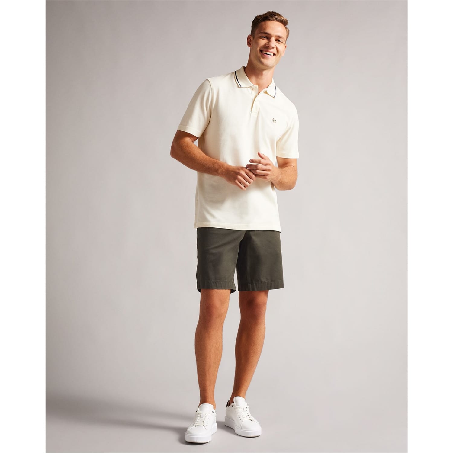 Discover the Ted Baker chino shorts, a perfect blend of style and functionality. These solid shorts feature a zip fly and button closure, offering a secure fit. Embellished with pockets and a subtle logo, they are ideal for casual outings. Part of the casual collection, these shorts are a versatile addition to any wardrobe. -
