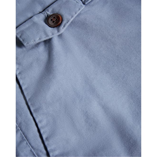 Ted Baker chino shorts are a perfect addition to your casual collection. Featuring a solid pattern, these shorts come with a button and zip fly closure. They are designed with practical pockets, including side and back pockets, offering both style and functionality. -
