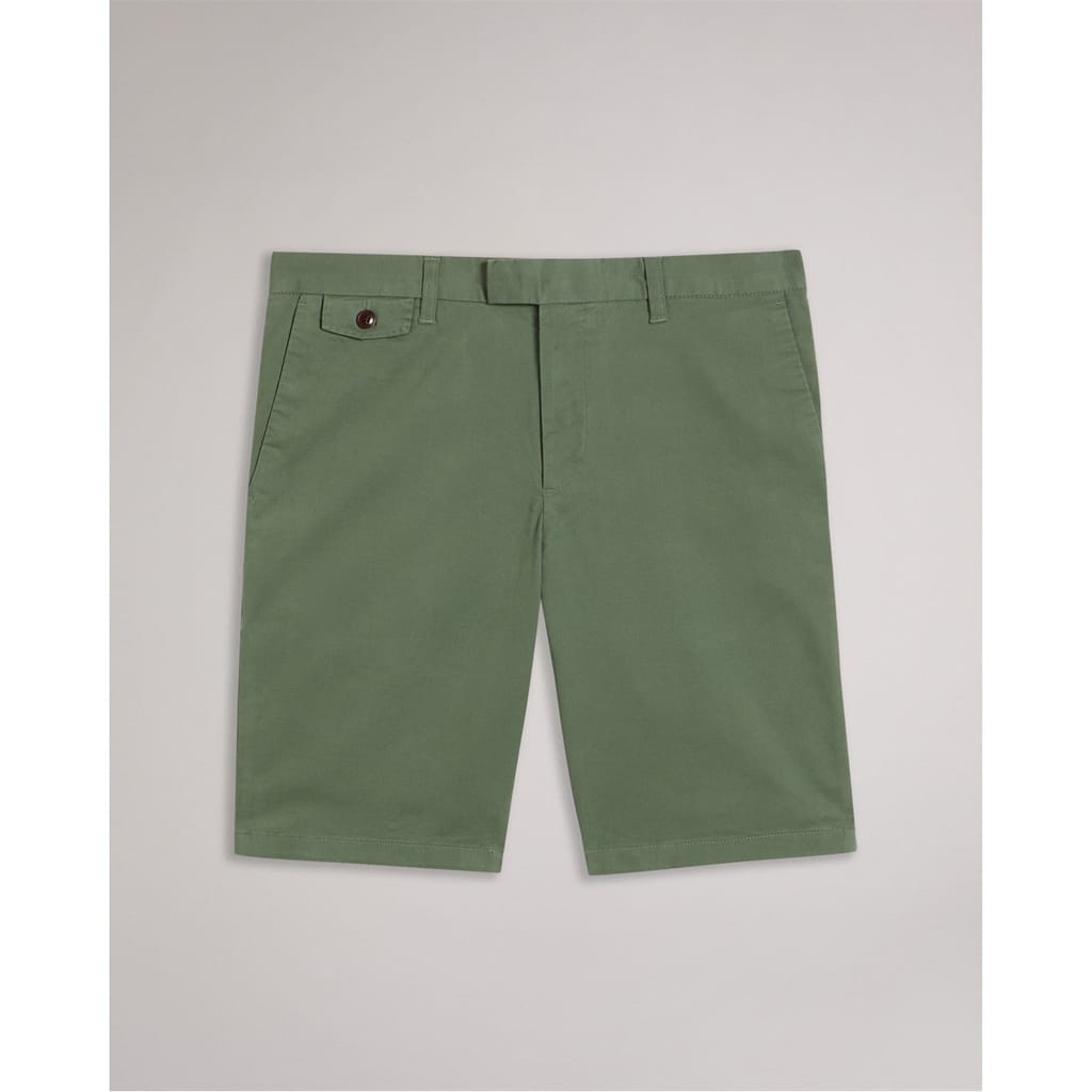 Discover the Ted Baker chino shorts, a staple for casual collections. These solid shorts feature a button and zip fly closure, offering a sleek and practical design. Embellished with a subtle logo and pockets, they combine style and functionality effortlessly. -