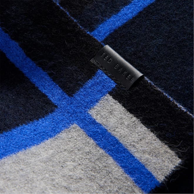 Discover the Ted Baker oblong scarf, a stylish accessory featuring a striking combination of stripe and plaid patterns. This elegant piece is perfect for adding a touch of sophistication to any outfit, showcasing Ted Baker's signature design flair. -