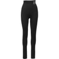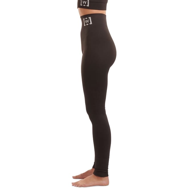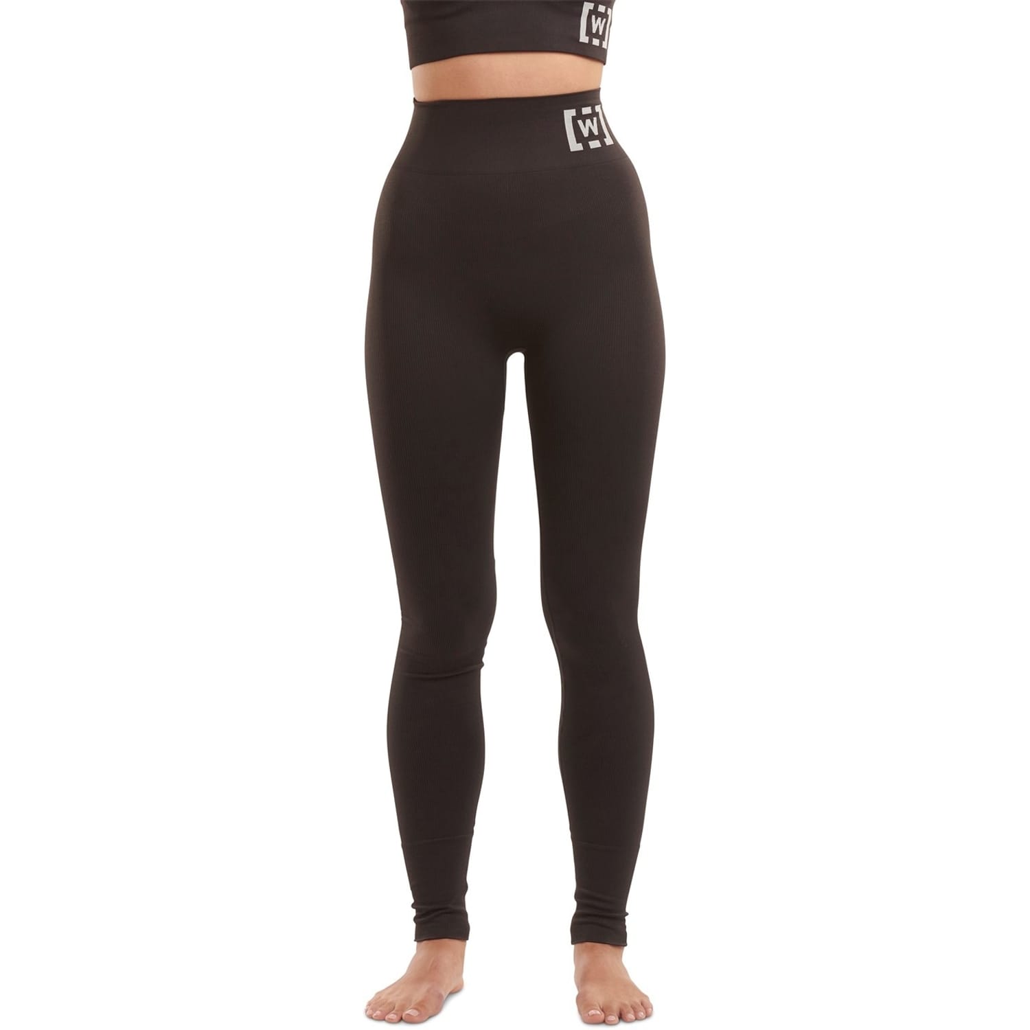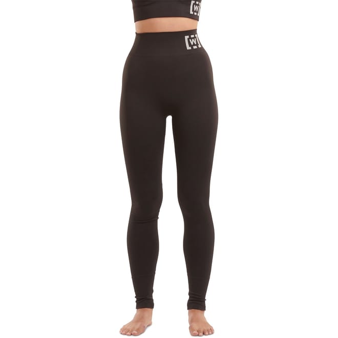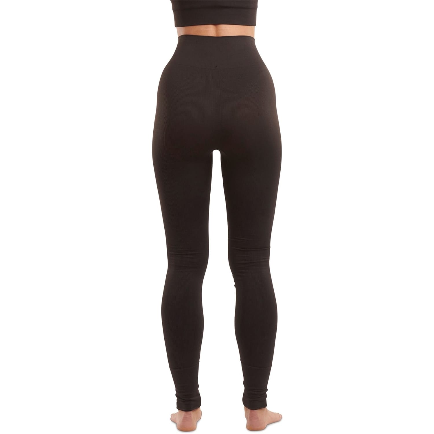 These seamless leggings are high waisted and have an extra long silhouette. Featuring a hardware free, pull on closure and a no rise, stay put cuff. A wide waist band and double layered fabric provide smoothing and subtle support.