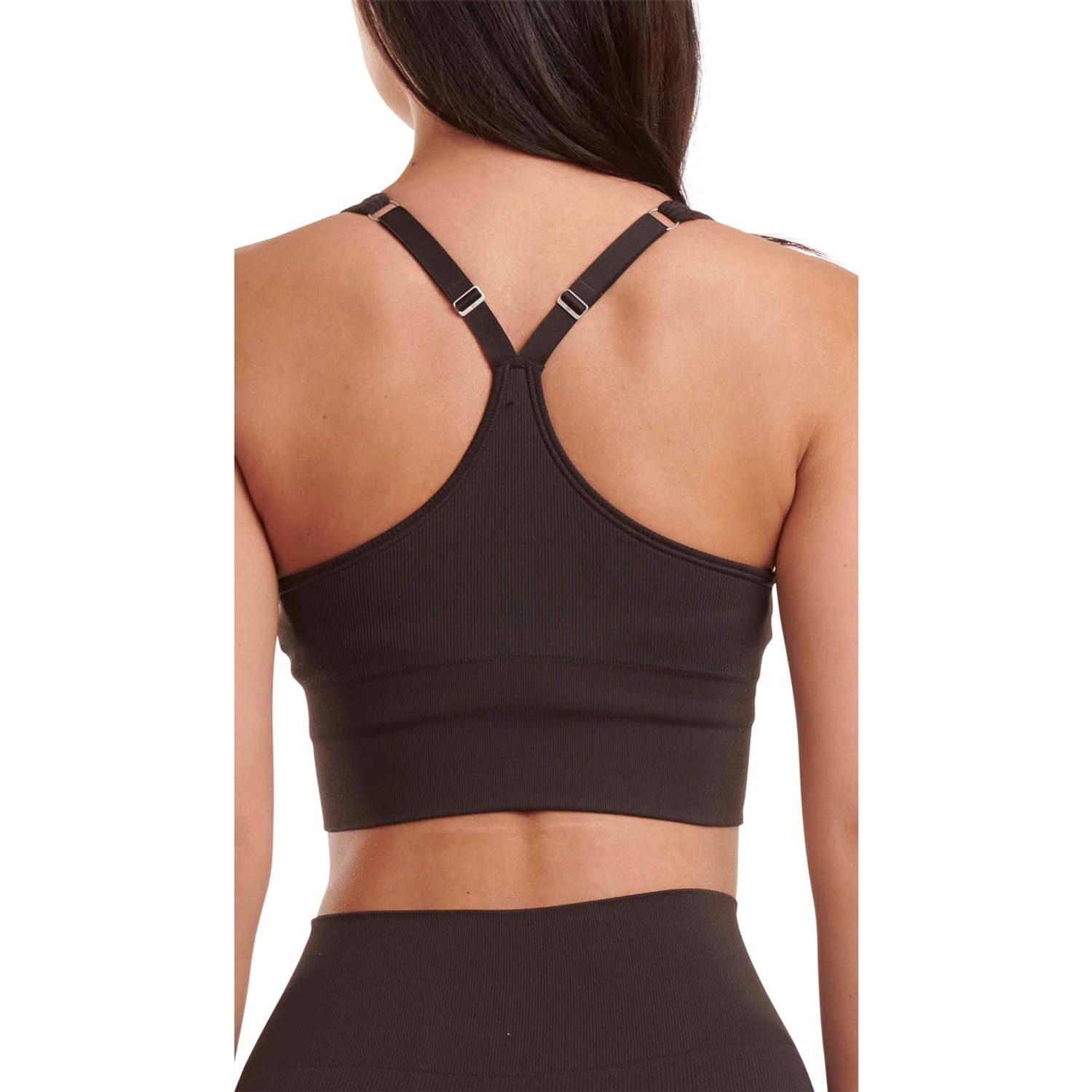 This plunge bra has removable Pads and a wide bottom band for added support. Featuring a pull on closure and adjustable straps. Moisture wicking, double layered fabric provides smoothing and subtle support.