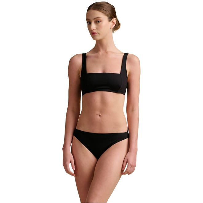 This chic and innovative swimwear essentials bottom is fabricated with a special outer fabric with a durable and substantial touch and is fully lined for a smooth outer look.