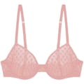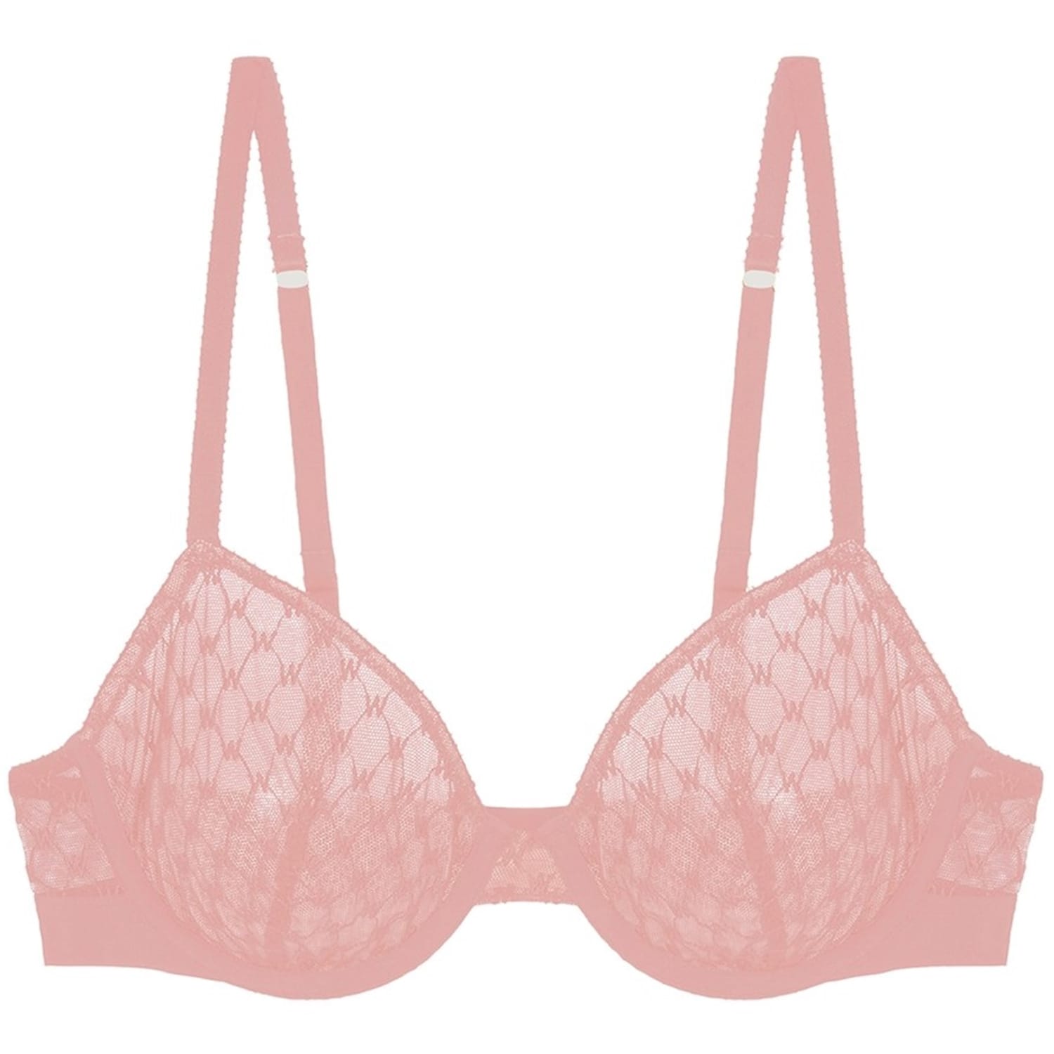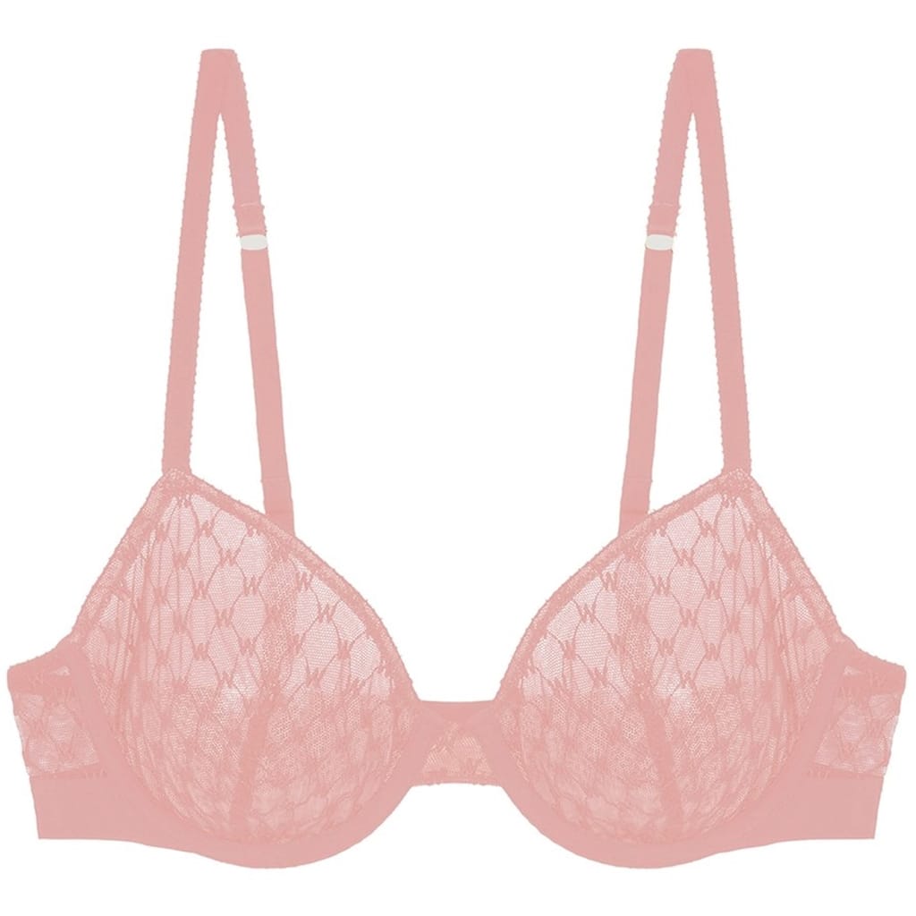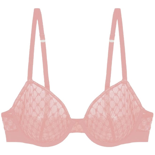- Logo embroidered sheer mesh with wire and tulle lined cups in a neutral color. Our unlined Demi is airy and light and provides support.
