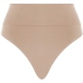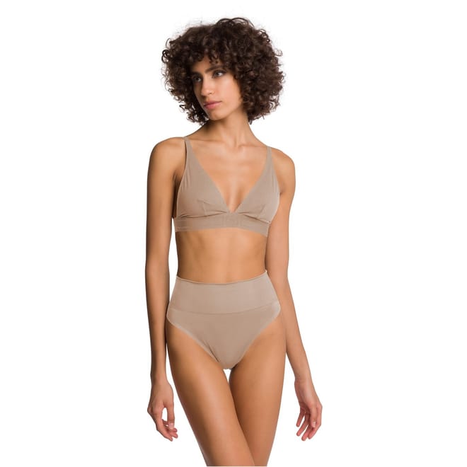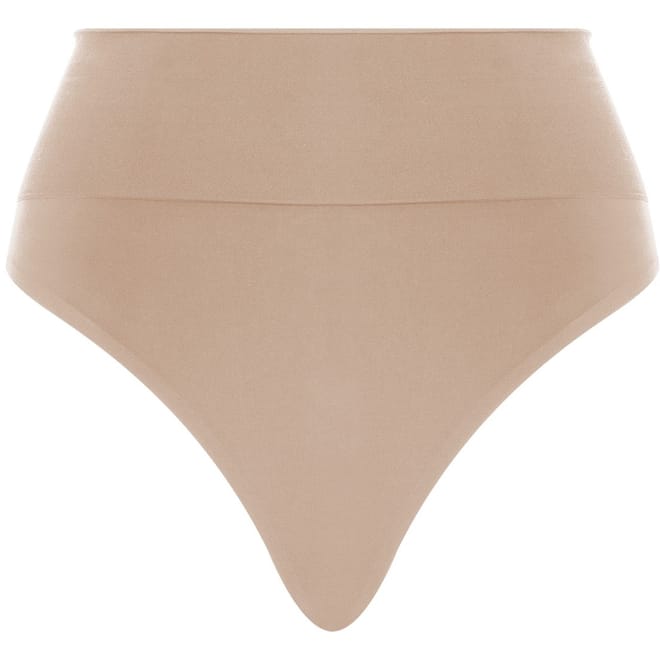 This thong is made of seamless fabric that appears invisible underneath clothing and fits like a second skin. The high rise waistband, open back and bonded edges help smooth and prevent lines.