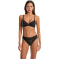 This mid-rise bikini is designed in a straight edged stretch Galloon lace that offers a sweet floral frame with a bold geometric edge at the leg line. There is no elastic at the leg line which allows total comfort without compromising the fit.