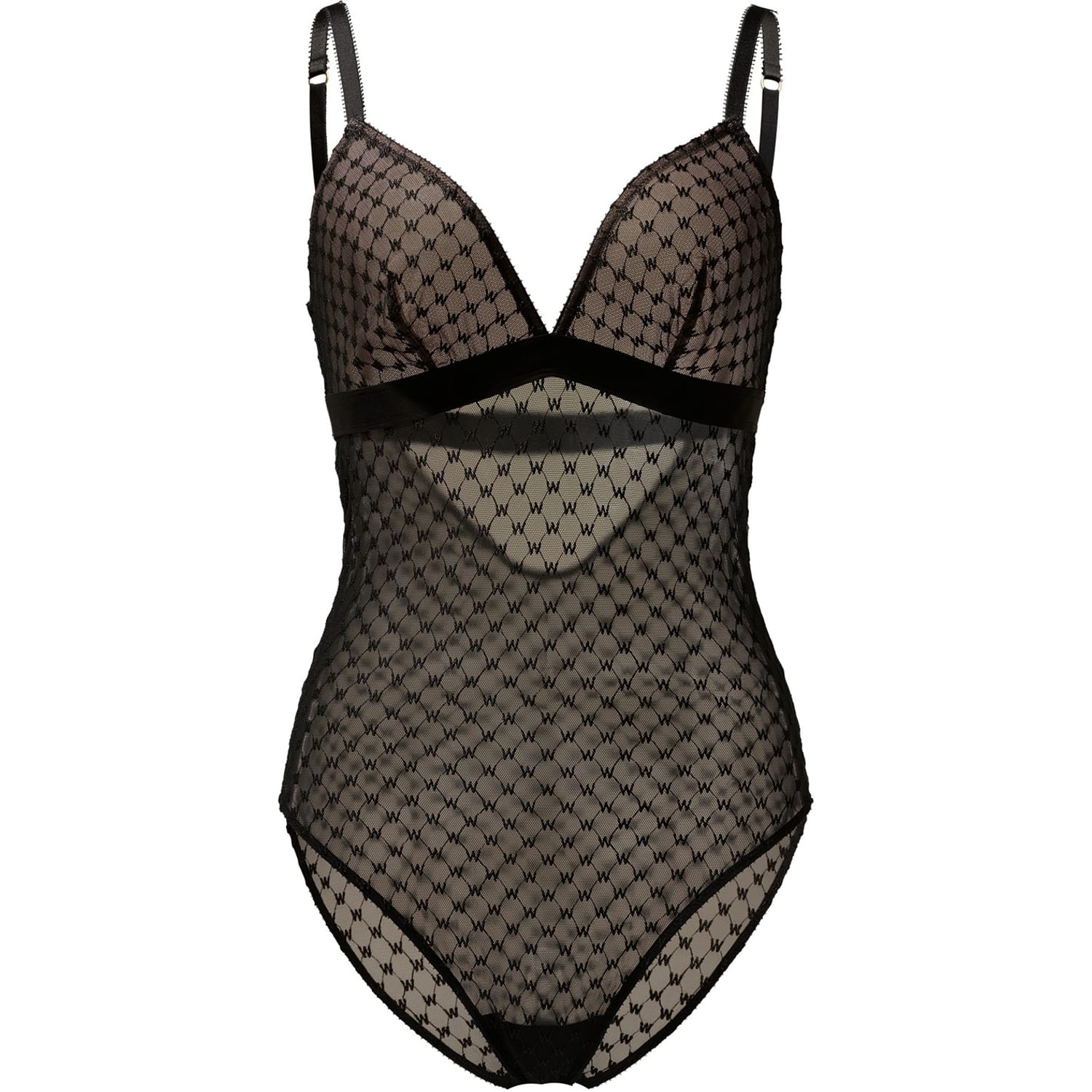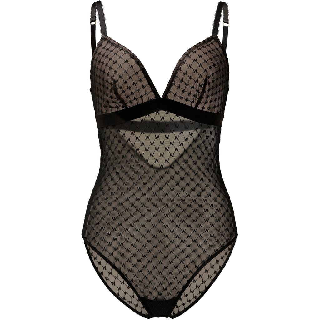 This bodysuit offers a modern twist on a timeless silhouette, featuring logo-embroidered sheer mesh and tulle-lined cups in a chic neutral tone. Crafted from stretch mesh, it ensures a flattering fit and all-day comfort. Perfect for layering or wearing solo, it’s an elegant choice for evening events or stylish nights out.