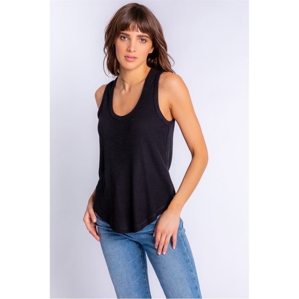 An everyday staple with a flattering twist. This rounded V-neck tank is crafted from soft 2x2 peachy rib with a curved hem that drapes effortlessly. Lightweight, comfy, and endlessly versatile — it’s the kind of piece you’ll reach for again and again. -