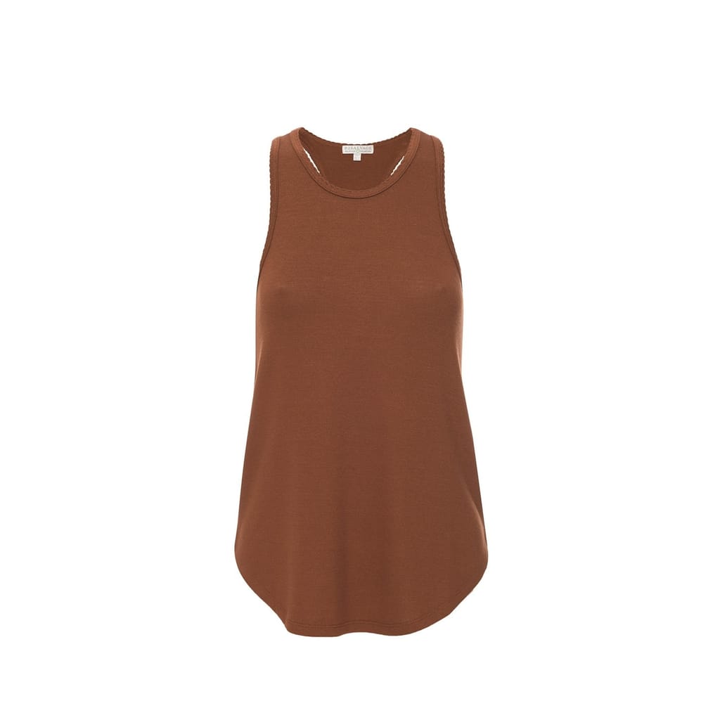 Racer back tank top in REPREVE® certified recycled fabric, with an ultra-fine jersey with a soft, slightly silky hand. Narrow straps with picot edge trim. -