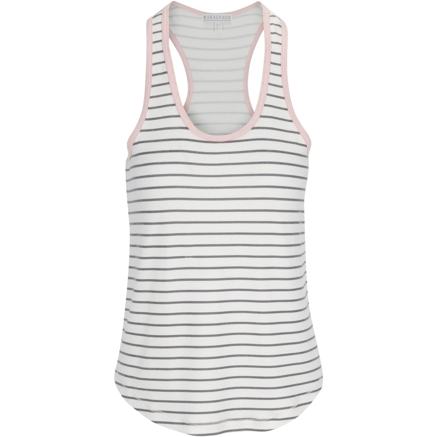 Sweet, sleeveless, and ready to chill. This lounge top is crafted from soft peachy jersey in bold designs featuring a relaxed scoop-neck tank and matching shorts.