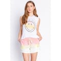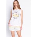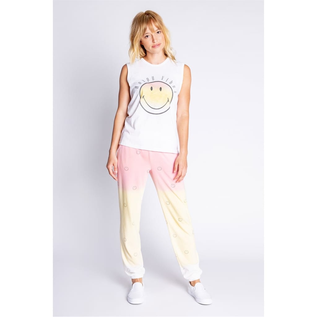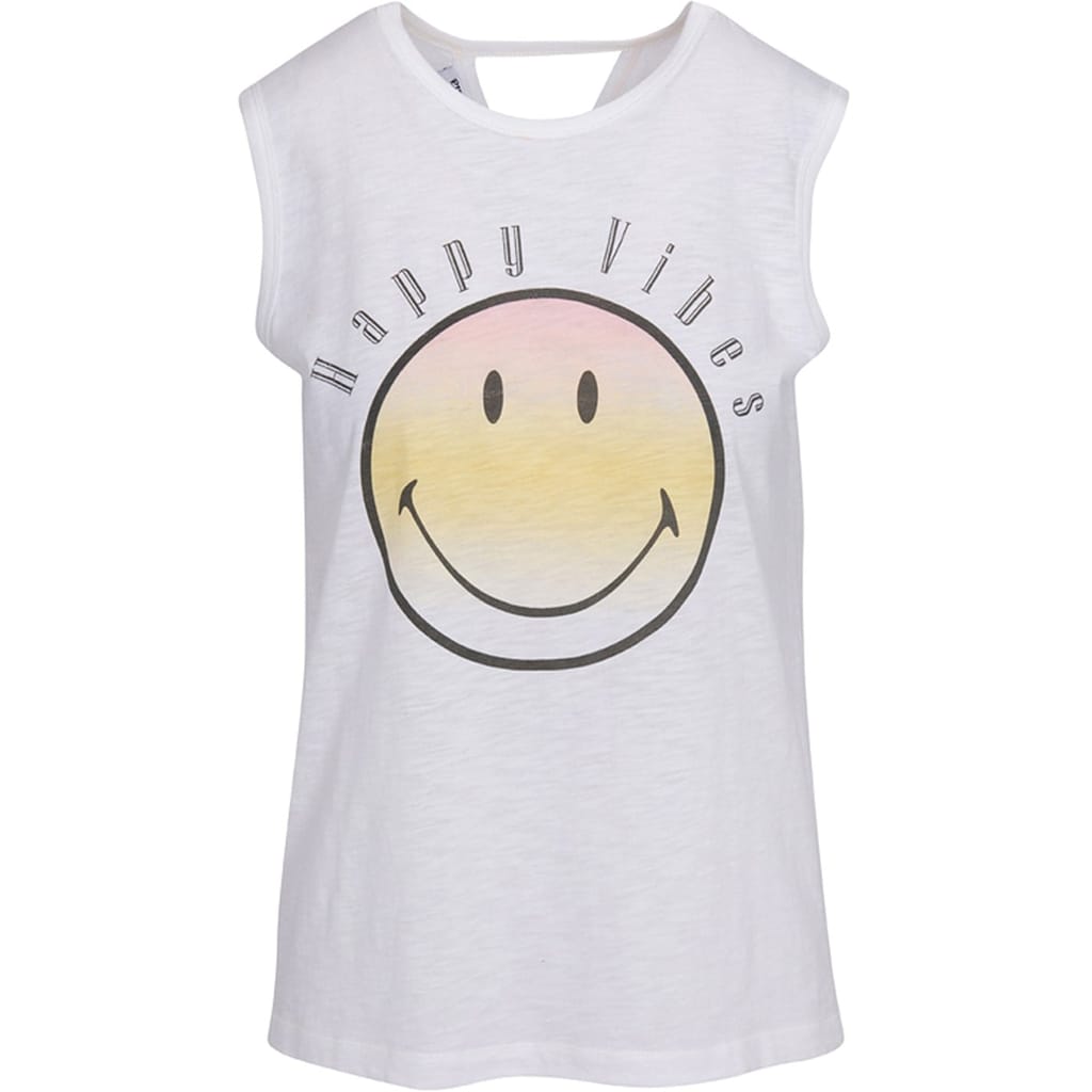 Slip into effortless style with this cotton-modal tank top, designed with a flattering back seam and playful neck cut-out detail. Finished with a bold HAPPY VIBES graphic across the chest, it’s the perfect piece to brighten up your everyday look. -