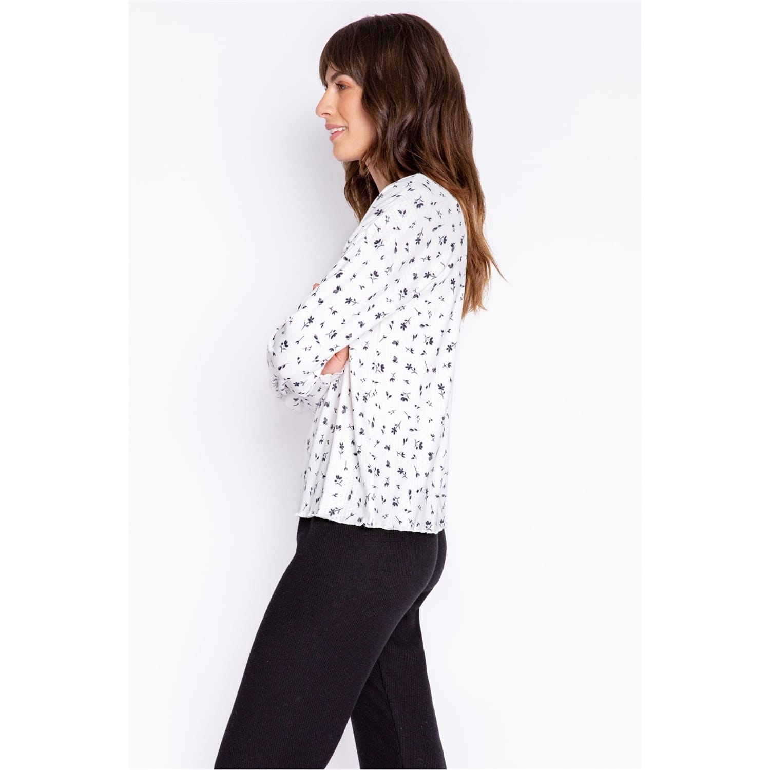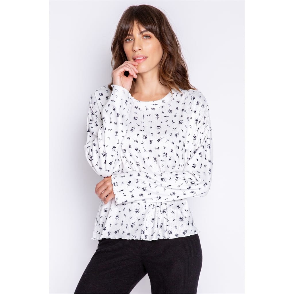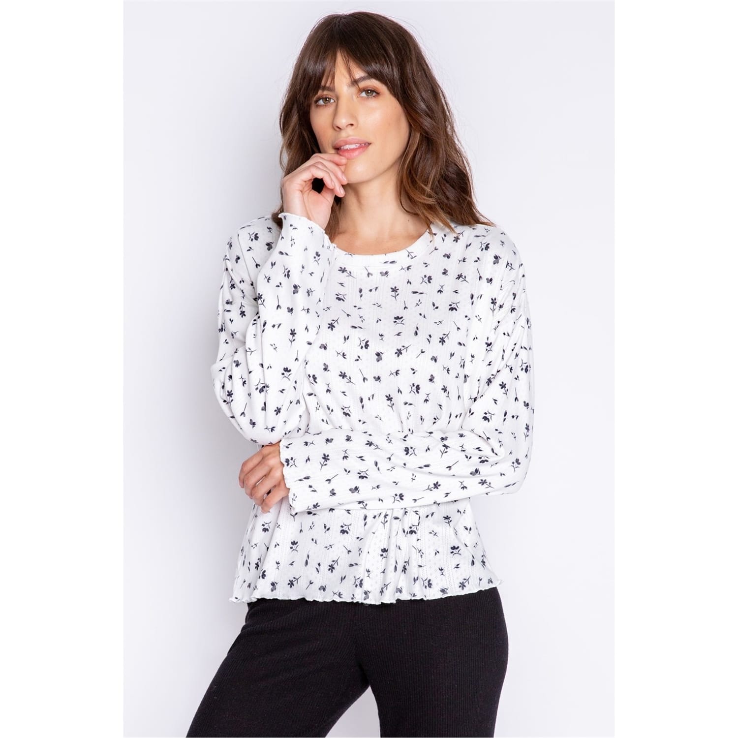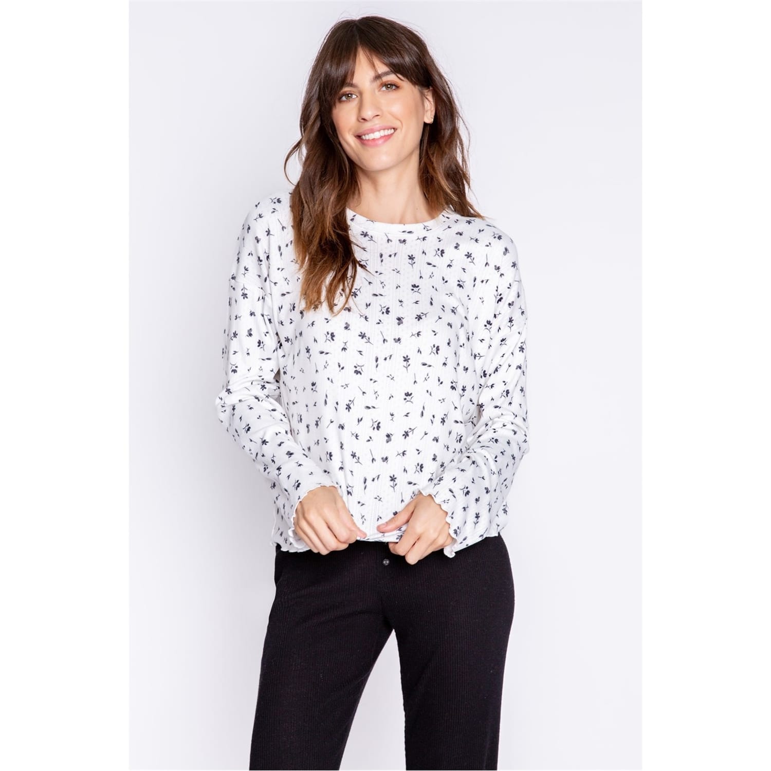 Fresh, simple, and effortlessly pretty. This classic white crew neck is brought to life with a delicate floral print, adding a soft pop of charm to your everyday style. Easy to wear and endlessly versatile, it’s the perfect piece to pair with anything from denim to lounge trousers — a timeless staple with a playful twist. -