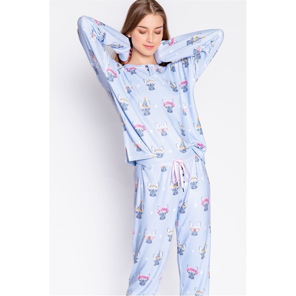 A birthday is the perfect time to enjoy all of our favourite things - it's our 25th and we're celebrating with cozy pj's in a dog-lovers' print! Join the party in our Frenchie-inspired jammie set top & pant in the softest peachy jersey. -