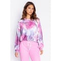 Wrap yourself in softness with this marbled pullover top, crafted in plush boucle fleece. Swirled in pink, berry, and ivory with shimmering gold highlights, it’s a cosy layer that feels as dreamy as it looks — perfect for adding a touch of warmth and style to your lounge days. -