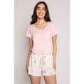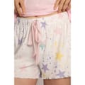 Super cosy sleep short in a pastel-starry pattern, perfect for lounging around or getting your errands done. Beautifully printed on ivory pointelle knit, these shorts come with a pink tie-waist and floral print. -