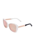 Discover the Prive Revaux sunglasses, a perfect blend of style and functionality. These cat-eye sunglasses feature a full rim design crafted from a combination of metal and plastic, ensuring durability and comfort. The geometric pattern adds a modern touch, while the mirrored tint lenses provide excellent glare reduction. A single bridge enhances the sleek look, complemented by the subtle logo embellishment. -