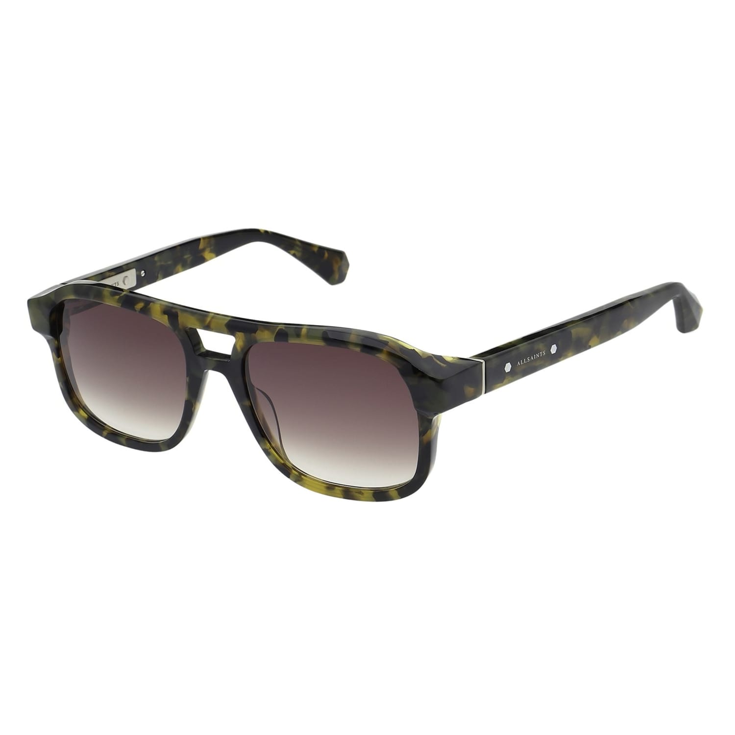 Discover the AllSaints sunglasses, a perfect blend of style and functionality. These rectangle sunglasses feature a full rim design crafted from durable acetate and plastic, ensuring a comfortable fit. The marble pattern adds a unique touch, while the double bridge enhances the overall aesthetic. Equipped with 100% UV protection, these sunglasses offer optimal eye safety. The subtle logo embellishment completes the look with a touch of brand identity. -