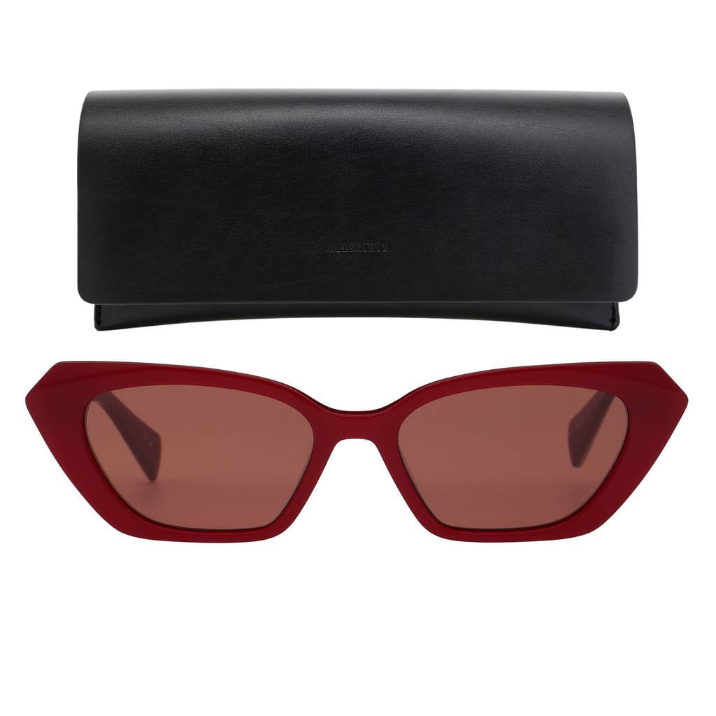 Discover the AllSaints sunglasses, a stylish addition to your eyewear collection. Featuring a chic cat-eye frame crafted from durable plastic, these sunglasses offer a full-rim design with a single bridge for a comfortable fit. The lenses provide 100% UV protection, ensuring your eyes are shielded from harmful rays. Subtle logo embellishments add a touch of brand identity to this elegant accessory. -